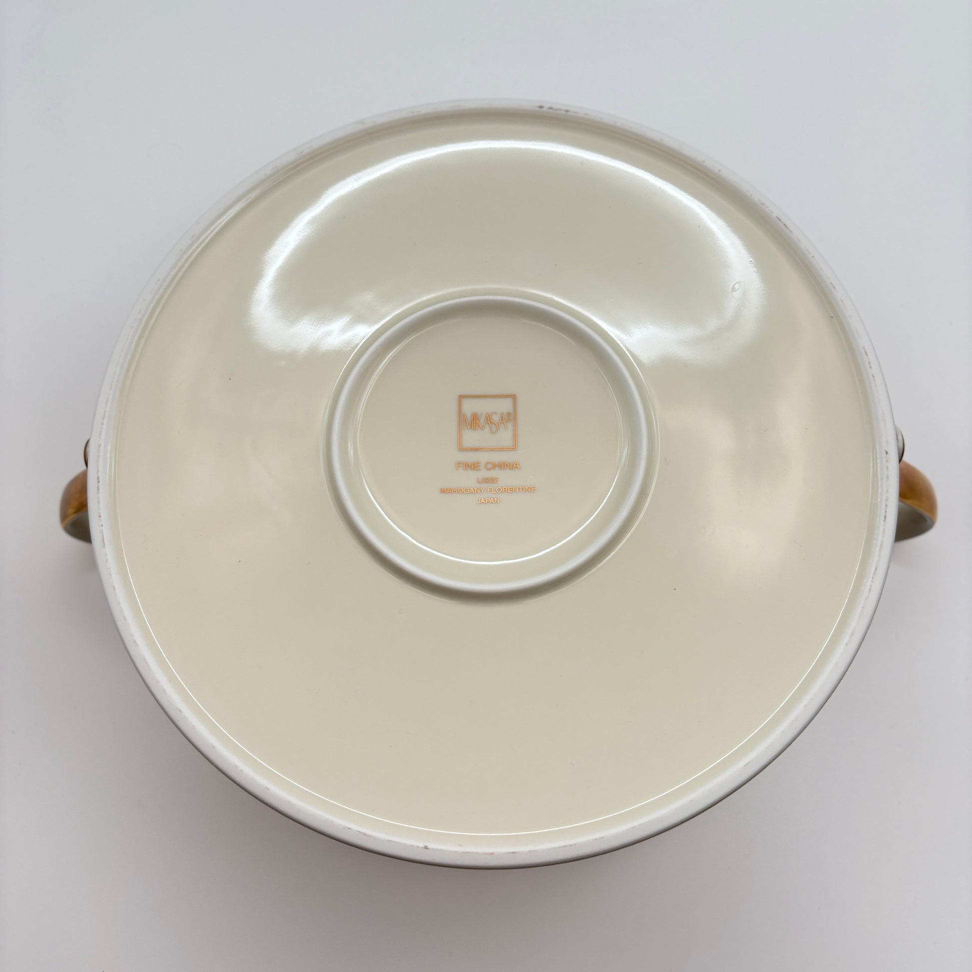 The Mikasa Fine China L2222 Mahogany Florentine Covered Pot is a discontinued and collectible pattern that was produced in Japan around 1999–2000.