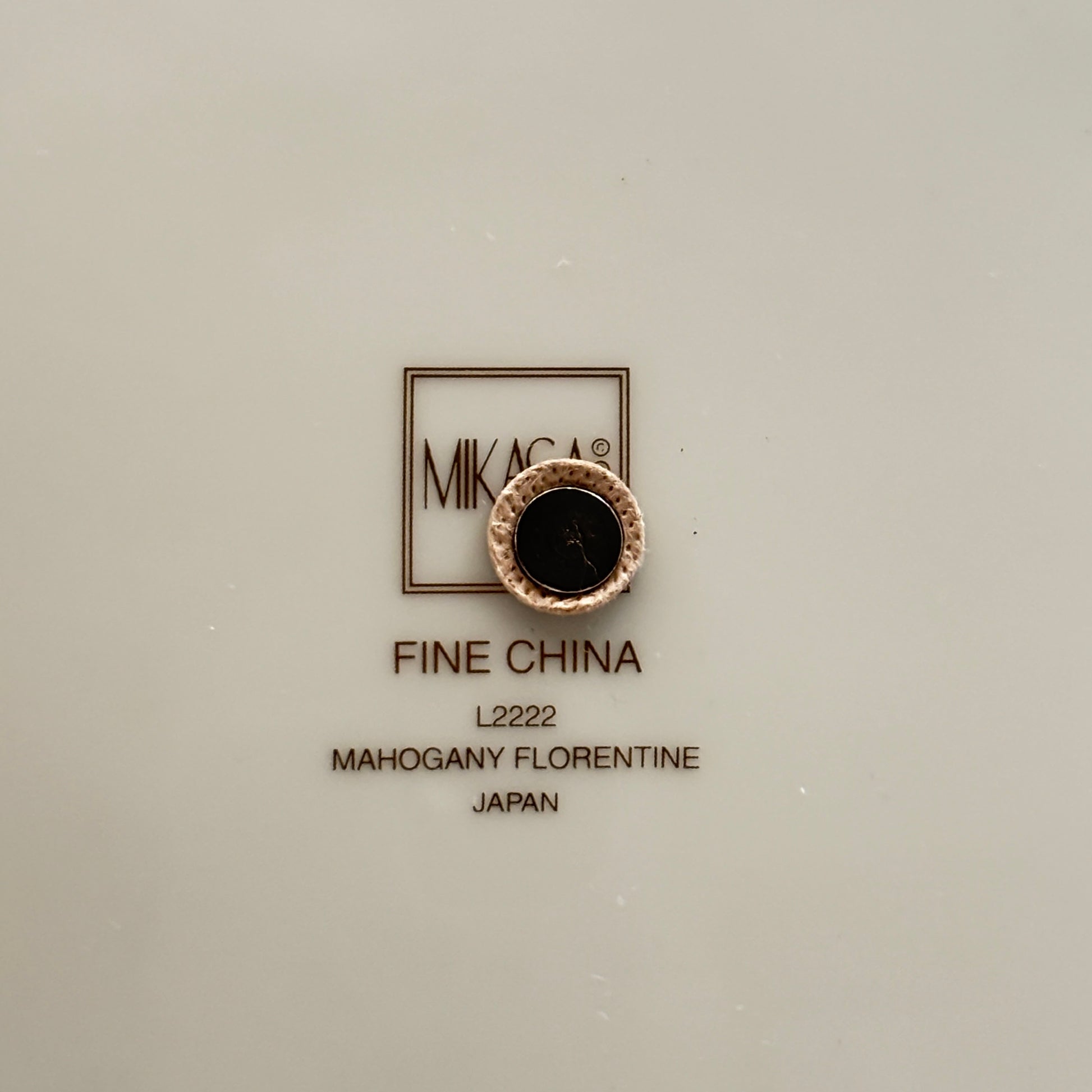 Mikasa Fine China L2222 Mahogany Florentine dinnerware set is a discontinued and collectible pattern that was produced in Japan around 1999–2000.