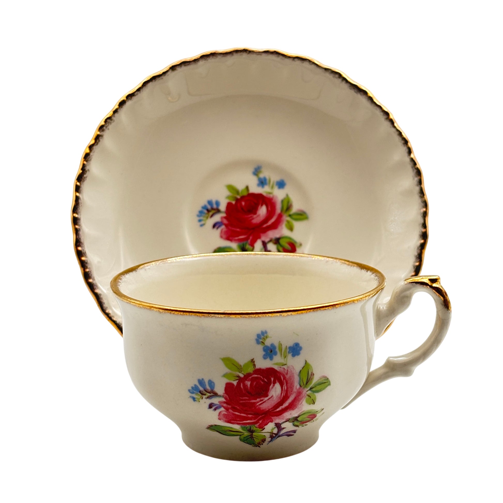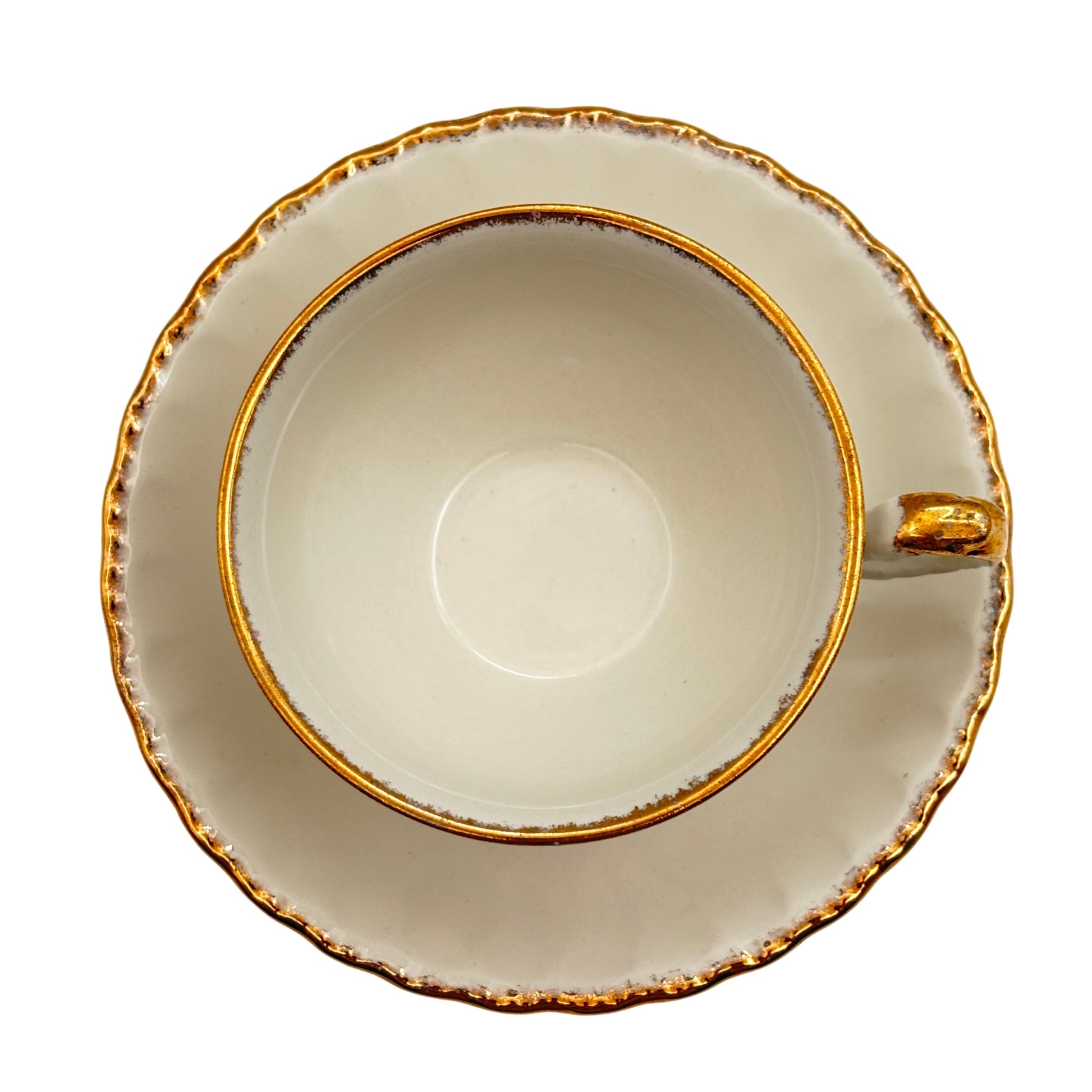 A quiet beauty from mid-century England, these Cream Petal Cups and Saucers by Grindley captures the romance of bygone table settings.