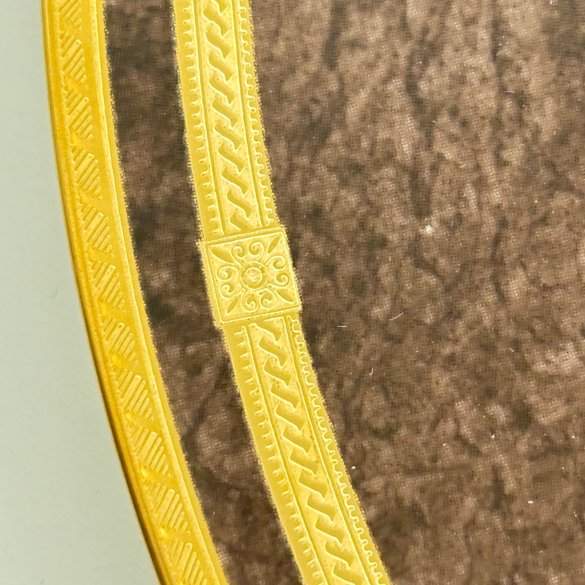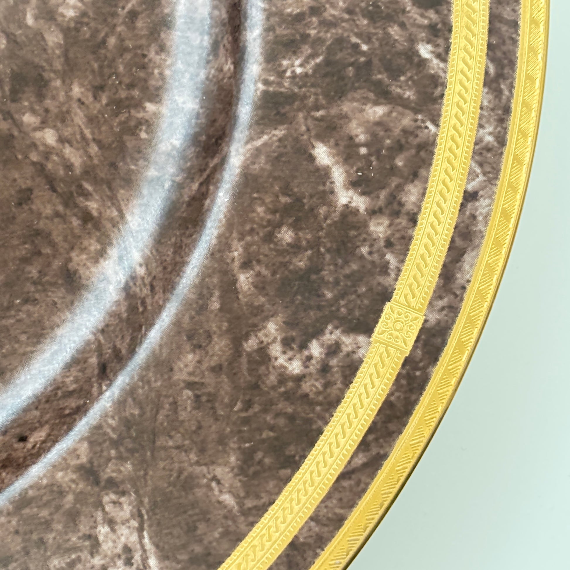 Elevate your dining experience with this exquisite round Chop Plate from Mikasa's discontinued Mahogany Florentine collection, renowned for its timeless sophistication and rich detailing. The Chop Plate showcases a luxurious gold-encrusted band paired with a brown marble rim, creating a warm, regal aesthetic that complements both formal and casual settings.