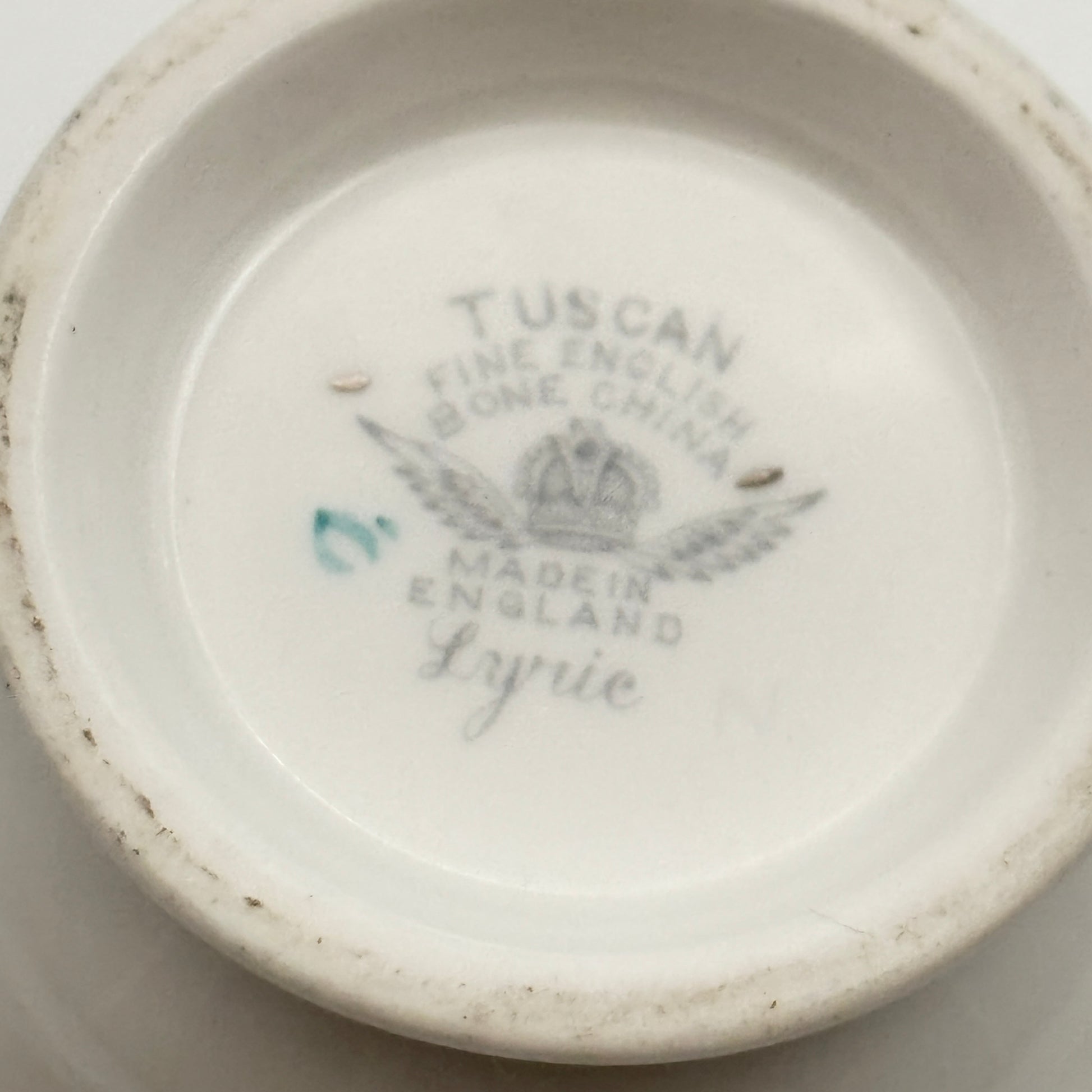🕰️ Historical Significance: Tuscan Fine China was founded in 1878 by R.H. Plant and later became part of the Wedgwood group in 1967, continuing production under the Royal Tuscan name. The Lyric pattern reflects the post-war era’s return to romantic, nature-inspired motifs, and is now a sought-after collectible for its rarity and timeless charm.