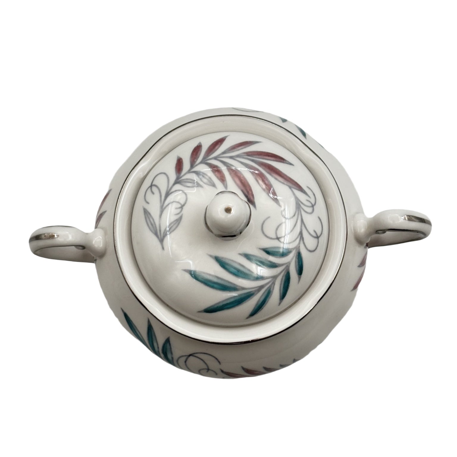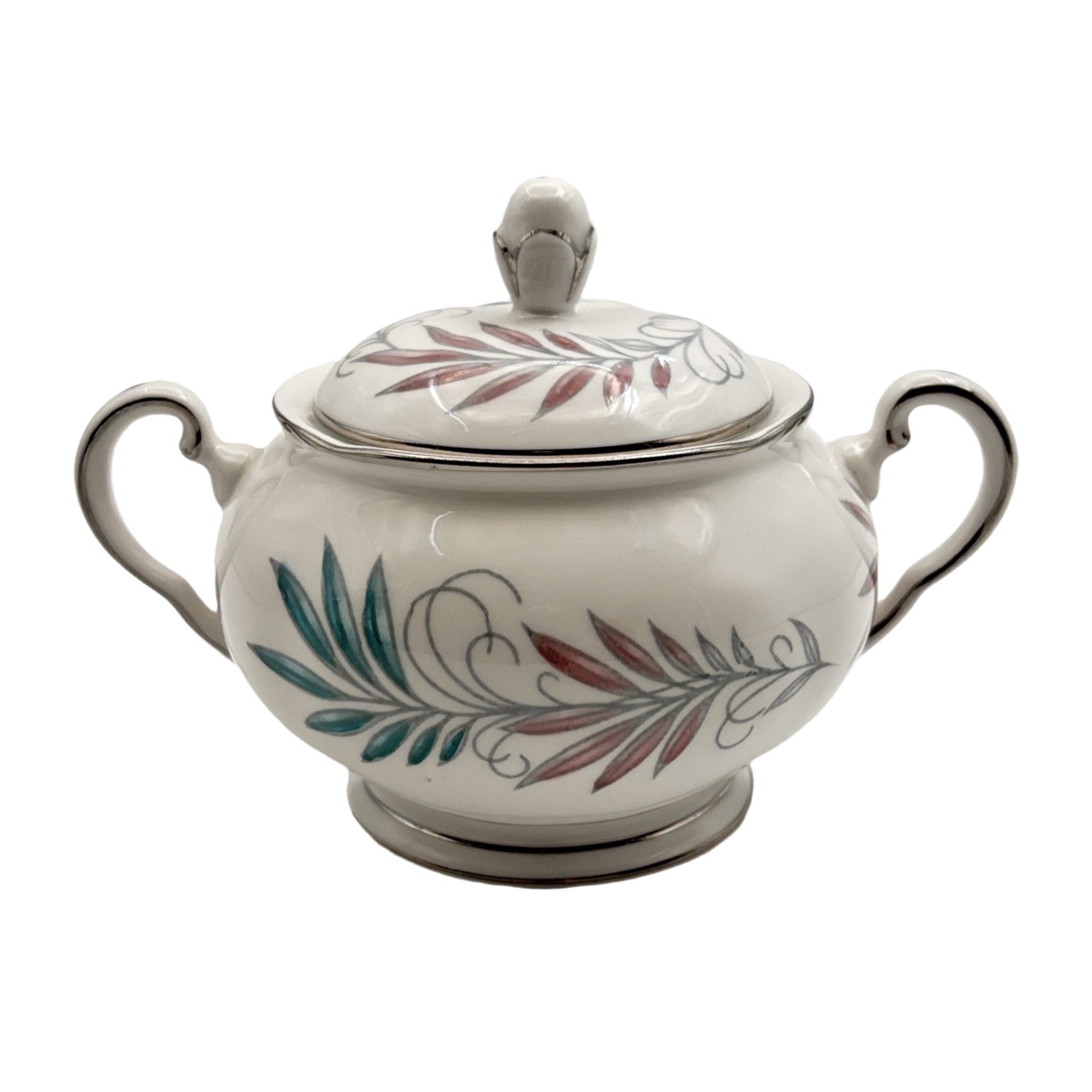 🎨 About the Lyric Pattern: The Lyric design features a graceful spray of pink and aqua fern leaves, arranged in a soft, organic composition that evokes the gentle rhythm of nature. The pattern is accented with platinum trim, adding a refined shimmer to each piece. The bone china itself is characteristically lightweight yet durable, with a translucent quality that speaks to its high quality.