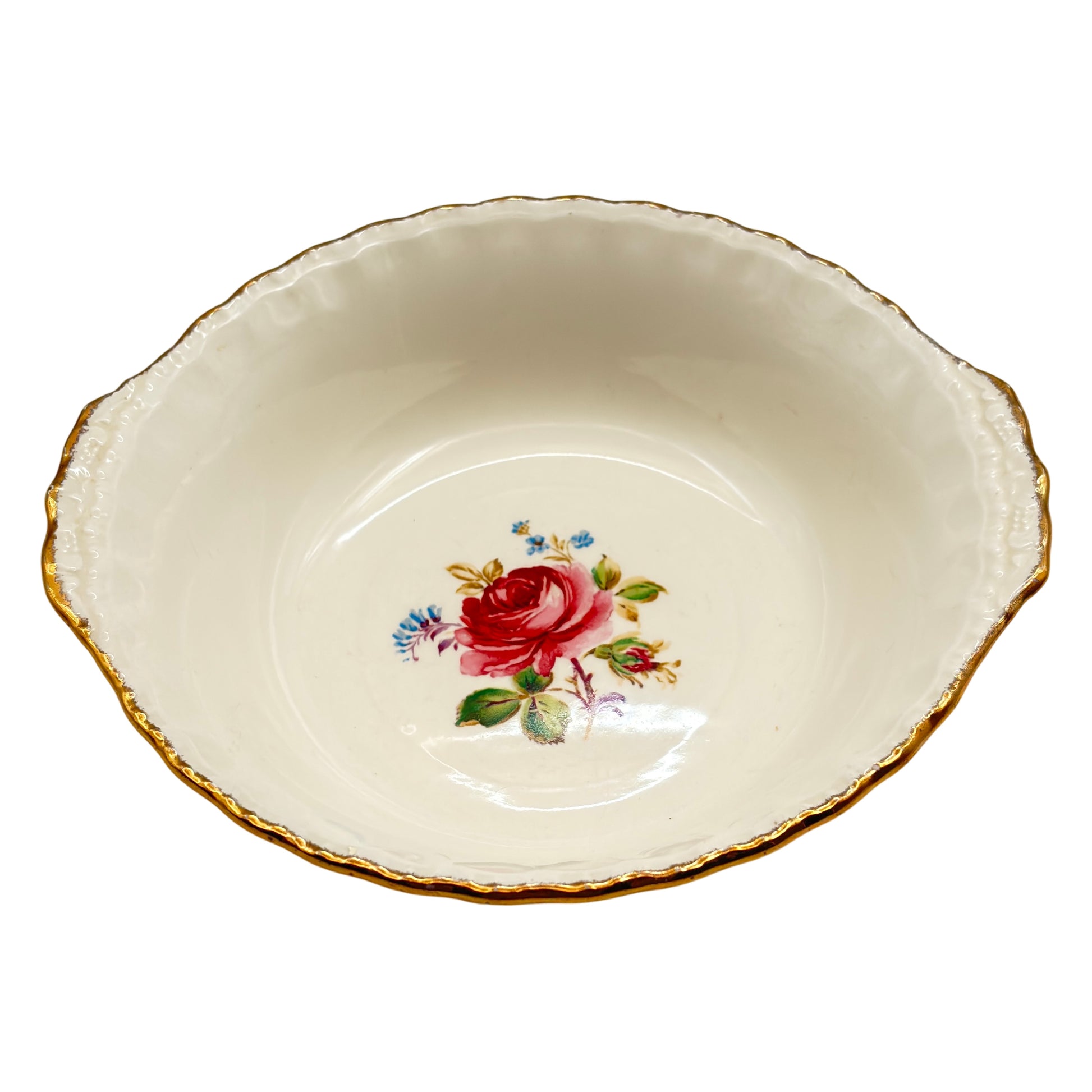 The vegetable bowl is in good condition, no chips, cracks or crazing. The gold trim in intact. May show slight manufacturing flaws.